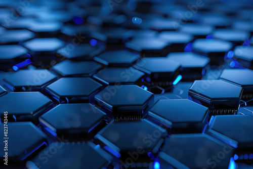 Obraz premium A dark blue abstract background with a repeating hexagonal pattern