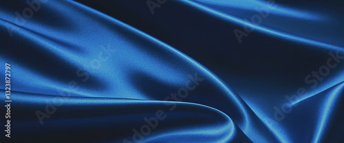 Obraz premium A dark blue abstract background with shiny fabric and wavy pleats, featuring...