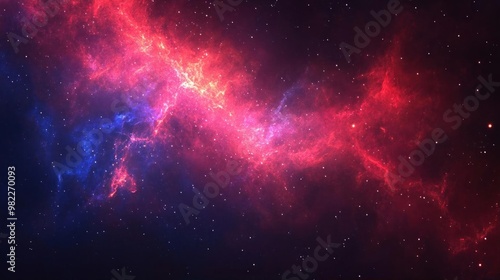 © Sabein, Naklejka premium A dark blue and red nebula with bright, white stars.