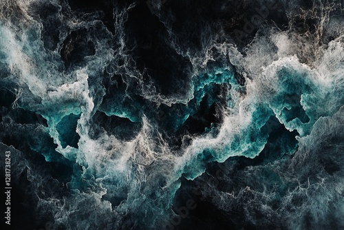 Fototapeta premium A dark blue and white ocean wave. Abstract background with glowing blue and...