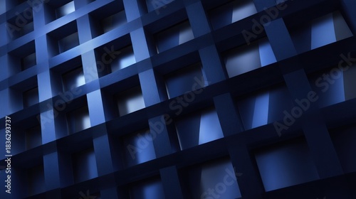 Fototapeta premium A dark blue grid pattern with illuminated squares, creating a geometric and...