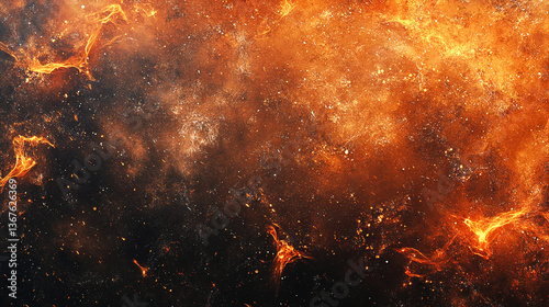 © Akash Tholiya, Fototapeta premium A dark brown and orange background texture with small sparks, fire particles, flames, smoke, and sparkles