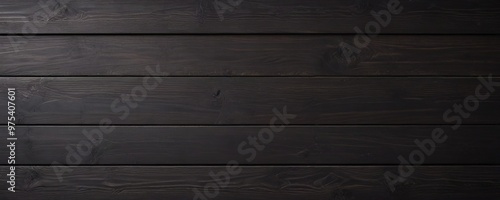 © Nipon, Naklejka premium A dark brown wooden surface with visible grain patterns and a uniform, horizontal arrangement of planks.