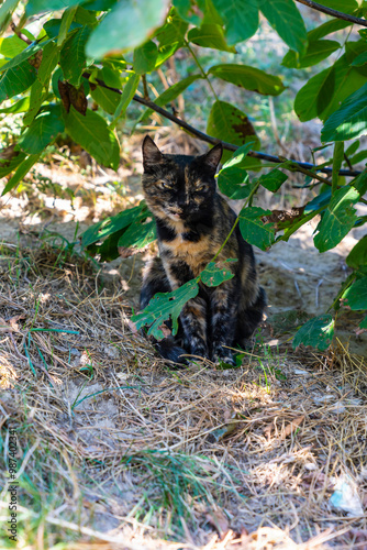 Fototapeta premium A dark-colored, skinny stray cat.