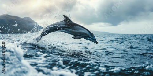 Obraz premium A dark dolphin soaring elegantly