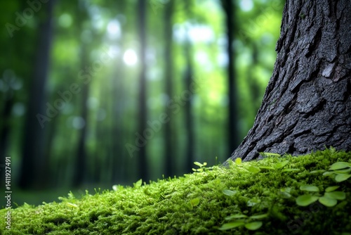 © Sanchai, Naklejka premium A dark enchanted tree with whispering bark, telling forgotten stories of the land