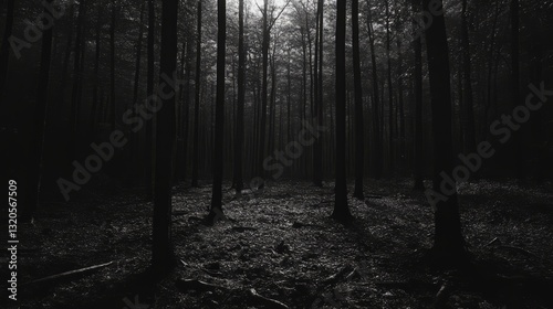 © Ceyhun, Naklejka premium A dark forest at night, with faint shadows of trees and a quiet, eerie stillness in the air