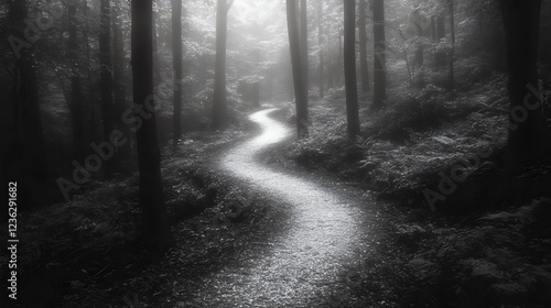 Naklejka premium A dark forest path with a curve in it