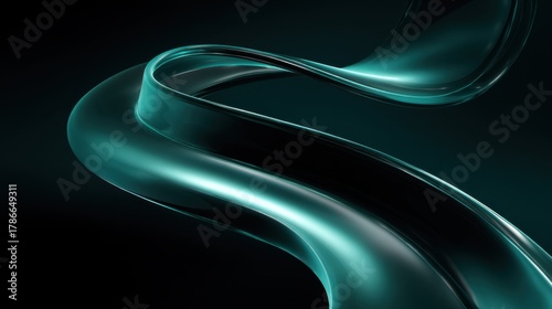 © ANDREI, Obraz premium a dark green background with an abstract, semi-transparent s-shaped curved ribbon in the center. the shape is dark and has a glossy finish that appears to be made of plastic or glass