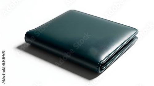 © MdAtiqur, Fototapeta premium A dark green leather wallet on a white background