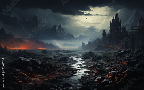 © stasknop, Naklejka premium a dark, magical, ruined castle