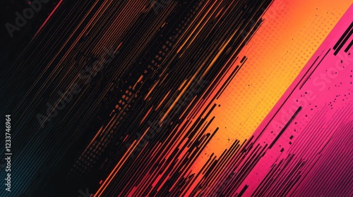 Fototapeta premium A dark, retro banner design with an abstract grainy background featuring a magenta, orange, and black gradient.