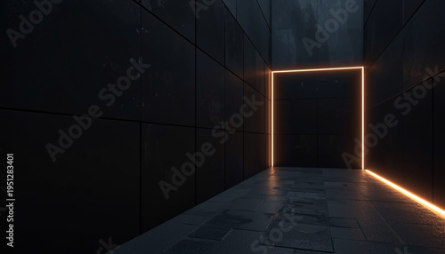 © Joshuva stock, Obraz premium A dark room with a glowing orange doorway and floor