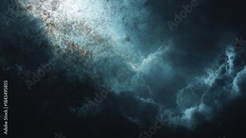 Fototapeta premium A dark sky with a few clouds and a bright light shining through the clouds....