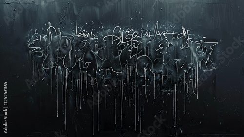 © Galib, Fototapeta premium A dark, textured background with streaks of white paint dripping down a black wall.