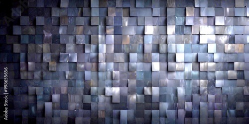 © Bualong, Fototapeta premium a dark, textured wall composed of numerous square tiles in varying shades of gray, creating a visually striking pattern