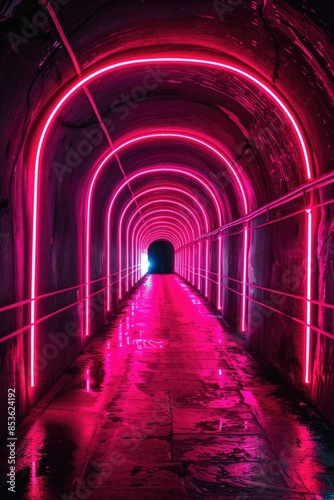 © Ева Поликарпова, Obraz premium A dark tunnel with a faint red light at the end