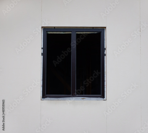 © Dmitry, Fototapeta premium a dark window without glass installed in the house against a light wall. repair and renovation.