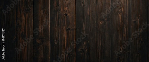 Naklejka premium A dark wooden wall with aged, distressed wood planks, showcasing the beauty...