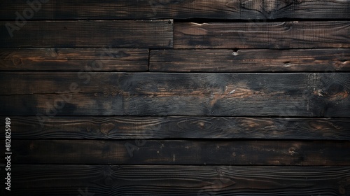 Fototapeta premium A dark wooden wall with many stacked planks showing distinctive wood texture