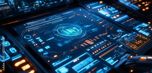 © Sana, Obraz premium A data stream flowing through a digital tunnel with glowing binary codes.
