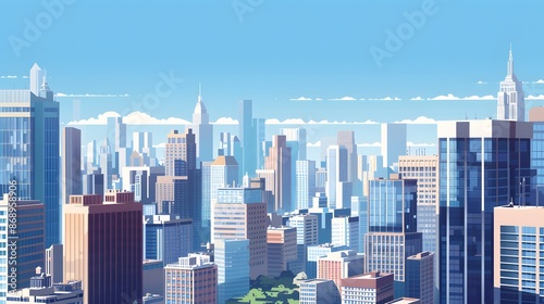 Fototapeta premium A Day in the City: Modern Skyscrapers under a Blue Sky