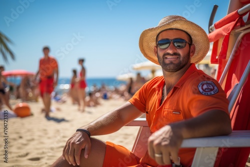 Obraz premium A Day in the Life: Portrait of a Dedicated Lifeguard Vigilantly Watching Over...