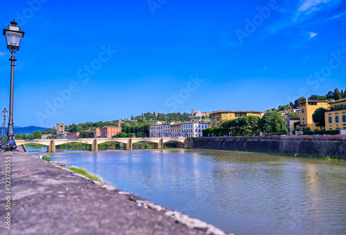 Obraz premium A daytime view along the Arno River in Florence, Italy.