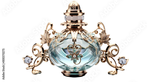 © FMSTUDIO, Naklejka premium A dazzling blue glass bottle adorned with intricate gold trimmings glistens in the light on transparent background