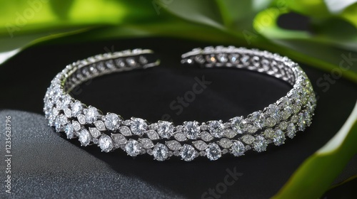 © Sawat, Fototapeta premium A dazzling diamond choker necklace displayed on a midnight black background.