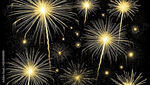 Naklejka premium A dazzling display of golden fireworks illuminating the night sky with a...