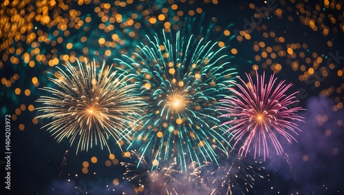 © Asawin, Naklejka premium a dazzling fireworks display explodes in the night sky, illuminating the darkness with vibrant colors