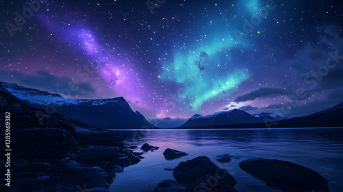 Fototapeta premium A dazzling night sky filled with stars, nebulae, and a soft aurora dancing...