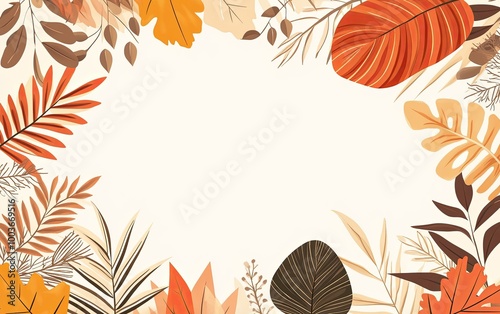 © Matthew, Fototapeta premium A decorative border featuring autumn leaves in warm colors, ideal for seasonal designs or invitations.