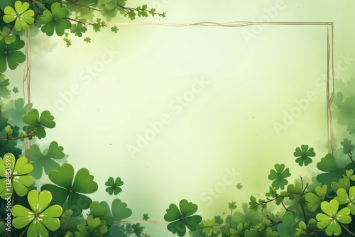 Fototapeta premium A decorative frame adorned with green clover leaves and branches, set against...