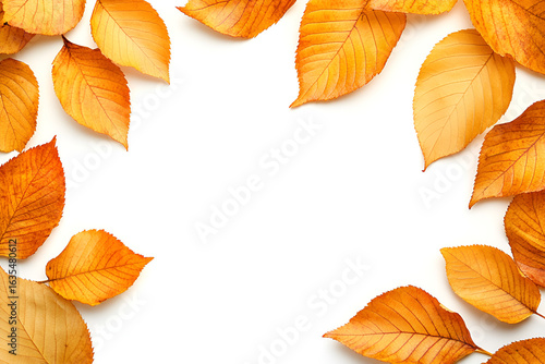Obraz premium A decorative frame of vibrant orange and yellow fall leaves isolated on a...