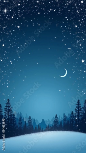 © Hifzhan Graphics, Naklejka premium A deep blue gradient resembling a winter night sky with twinkling stars, a crescent moon