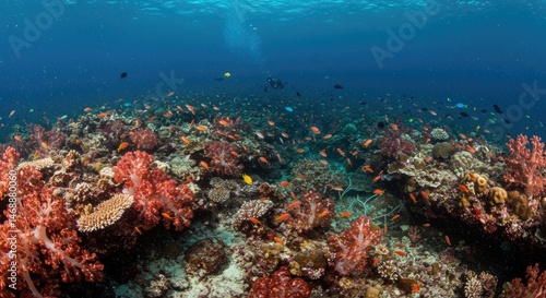 © Laviender, Fototapeta premium A deep blue sea view filled with beautiful various coral and small fish
