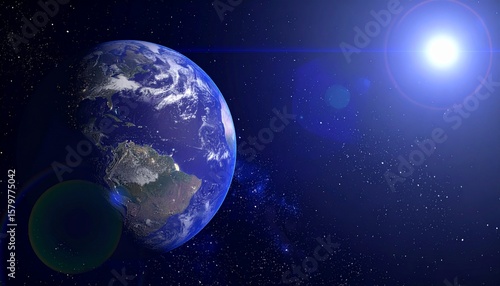 Fototapeta premium "A deep space scene with a glowing planet and sparkling stars, ambient light...