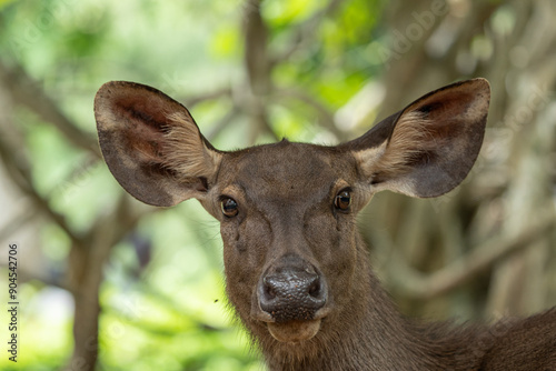 © Thisara, Fototapeta premium A Deer face with a fly standing on it