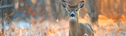 © Rungrudee, Obraz premium A deer stands in the middle of a snowy forest