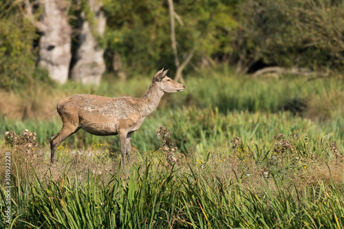 © jon, Fototapeta premium A deer watching a group of deer in the park