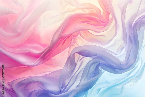 © Aodsy, Obraz premium A delicate abstract design of flowing pastel fabric in shades of pink, purple, and blue, creating a soft, airy texture with gentle wave-like folds.