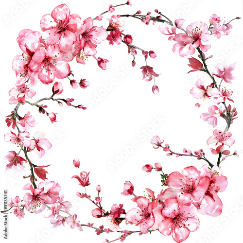Naklejka premium A delicate arrangement of pink cherry blossoms in a circular design for...
