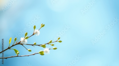 © BokehBox, Obraz premium A delicate branch with white blossoms reaching towards a vibrant blue sky