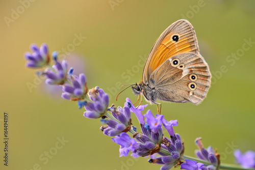 © Visol Studio, Fototapeta premium A delicate butterfly feeding on fragrant purple lavender flowers in a garden