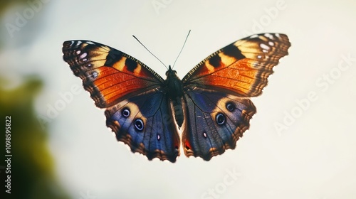 Fototapeta premium A delicate butterfly in flight, with its wings spread wide