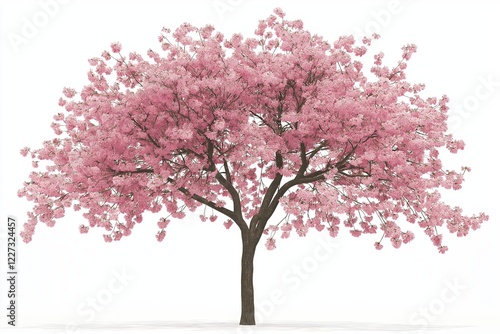 © Suresh Thangavel, Fototapeta premium A delicate cherry blossom tree against a plain white background