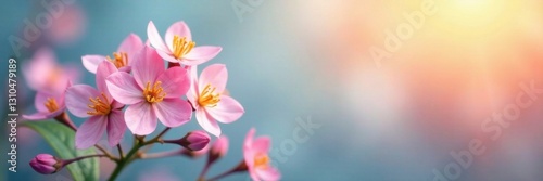 Fototapeta premium A delicate cluster of flowers resting on a blurred background featuring a gentle transition from pink to blue and yellow tones , flowers, background, blurred