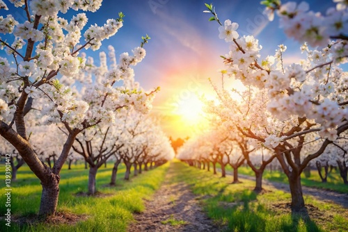 © Sirinporn, Obraz premium A Delicate Dance of Spring White Cherry Blossoms in Full Bloom Unveiling Tranquil Beauty